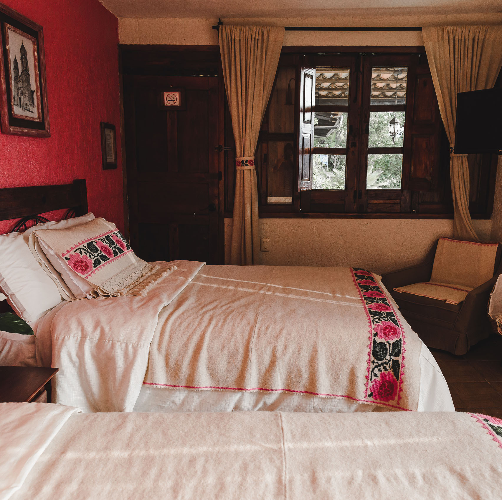 Perfecta para amigos o familiares, una tarde bohemia, una terraza amplia. Ideal para tomarse fotos, una copa de vino acompañada de una tabla de carnes.Decorada con textiles de lana, bordados con punto antiguo o de cruz, piezas únicas en suite el rosal.